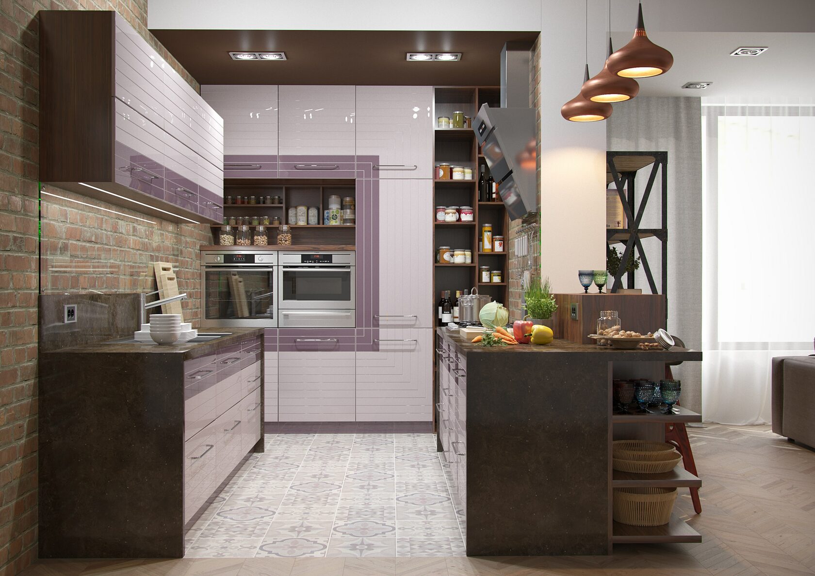 Высокоглянцевые фасады модели Астра изготовлены из материала МДФ с нанесением оригинальной фрезеровки, покрыты несколькими слоями эмали и лака, что придает кухне глубокий глянец и прекрасно сочетается с современным интерьером.