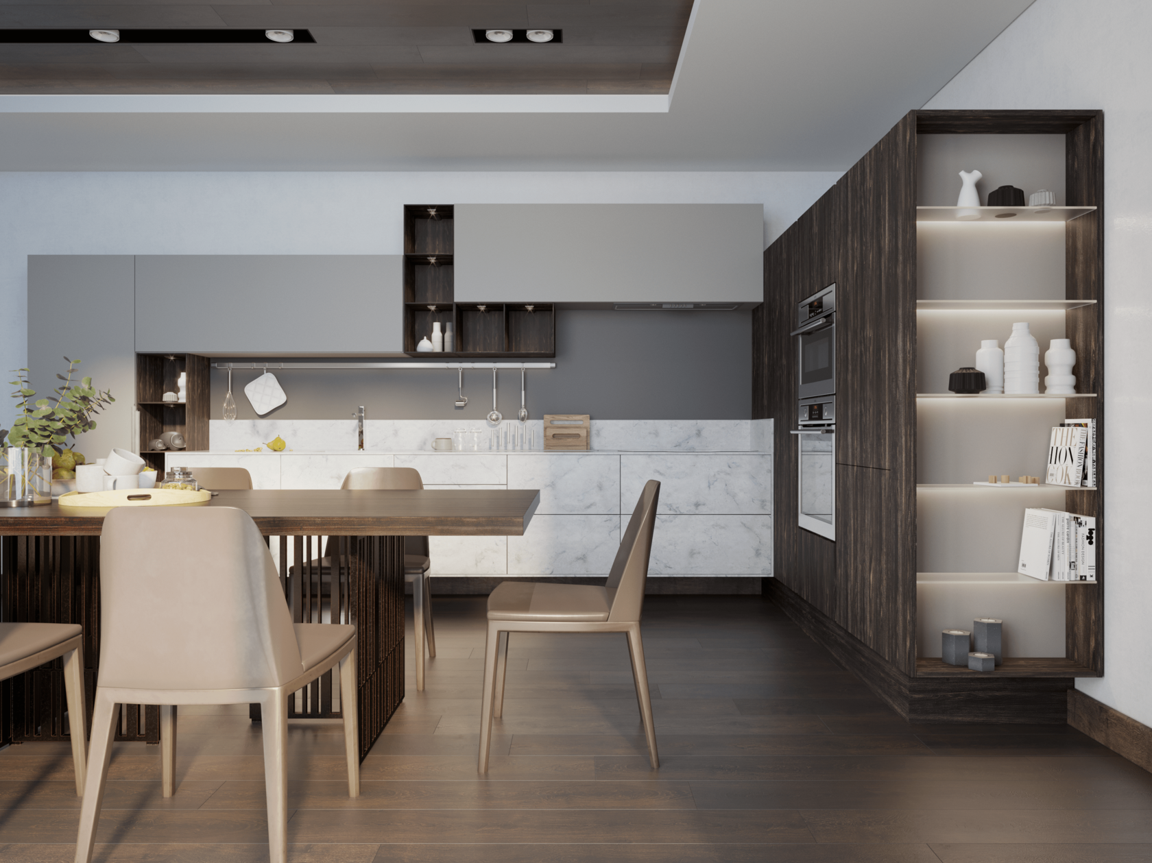 ▪️Деревянные текстуры в современных кухнях создают контраст, а мрамор добавляет изысканность — это баланс между природным материалом, и тем, что создано руками человека.